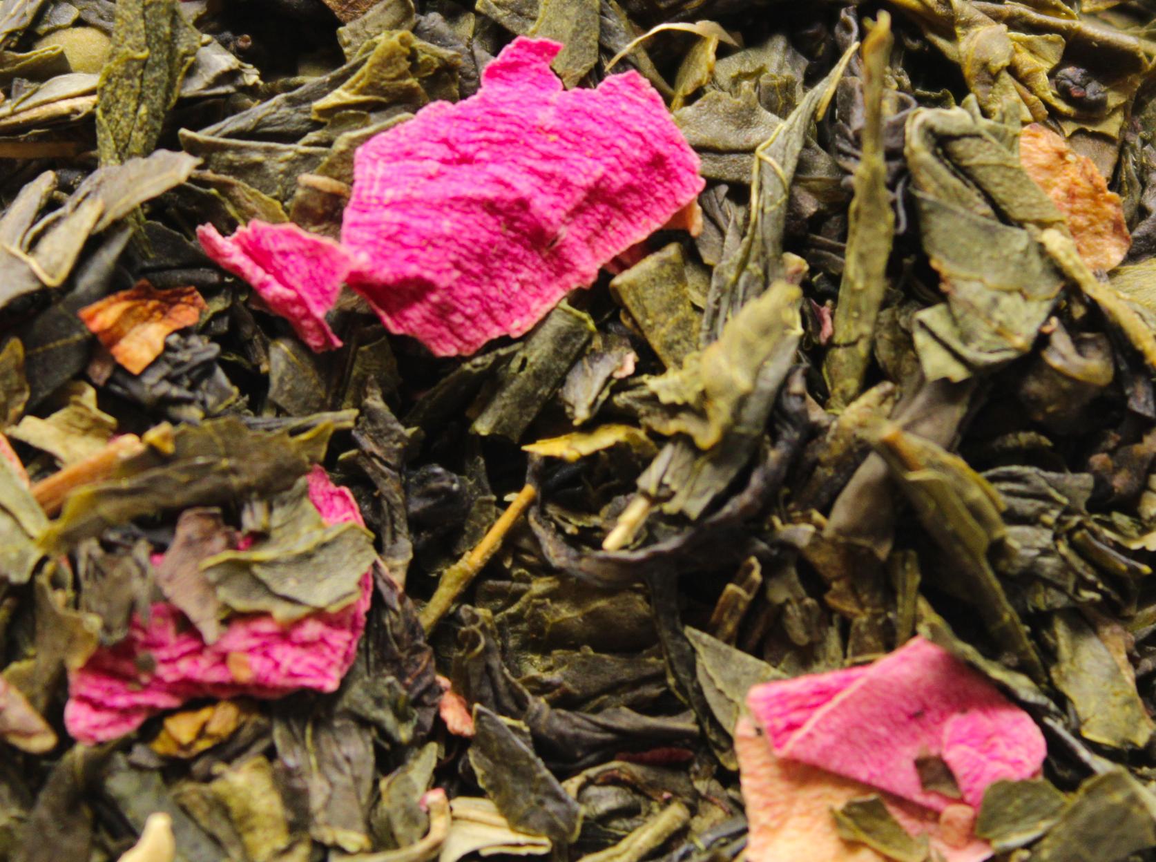 A subtle balance of fresh, fruity and floral notes is found in this delicately scented green tea which is just as delicious whether you enjoy it cold or hot. (jasmine green tea, aromas of lychee, grapefruit, blood peach and rose).