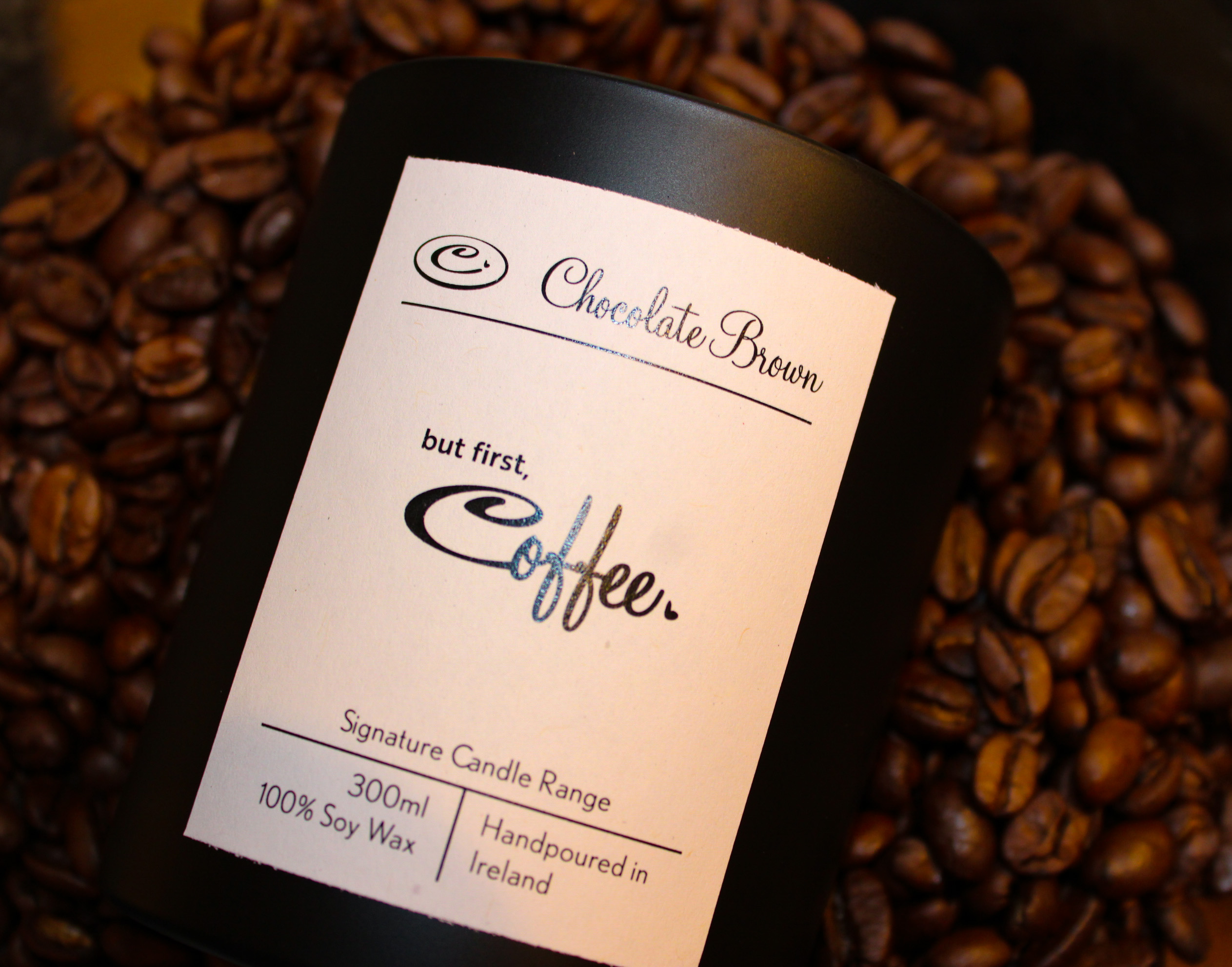 Home / SHOP / Candles / Signature Chocolate Brown / Chocolate Brown "But First, Coffee" signature Candle - BlackEnjoy this totally captivating scent of raosted coconut and roasted coffee.