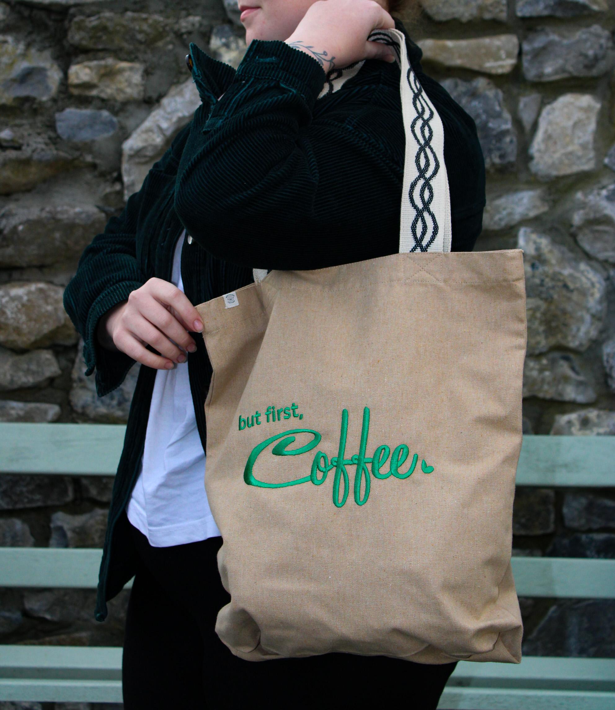 Home / SHOP / Merchandise / But first, Coffee Totes / Conscious collection -Flat-bottom hemp tote bag - Natural & GreenRecycled hemp- Zipped inside pocket.GRS (Global Recycled Standard) certified.