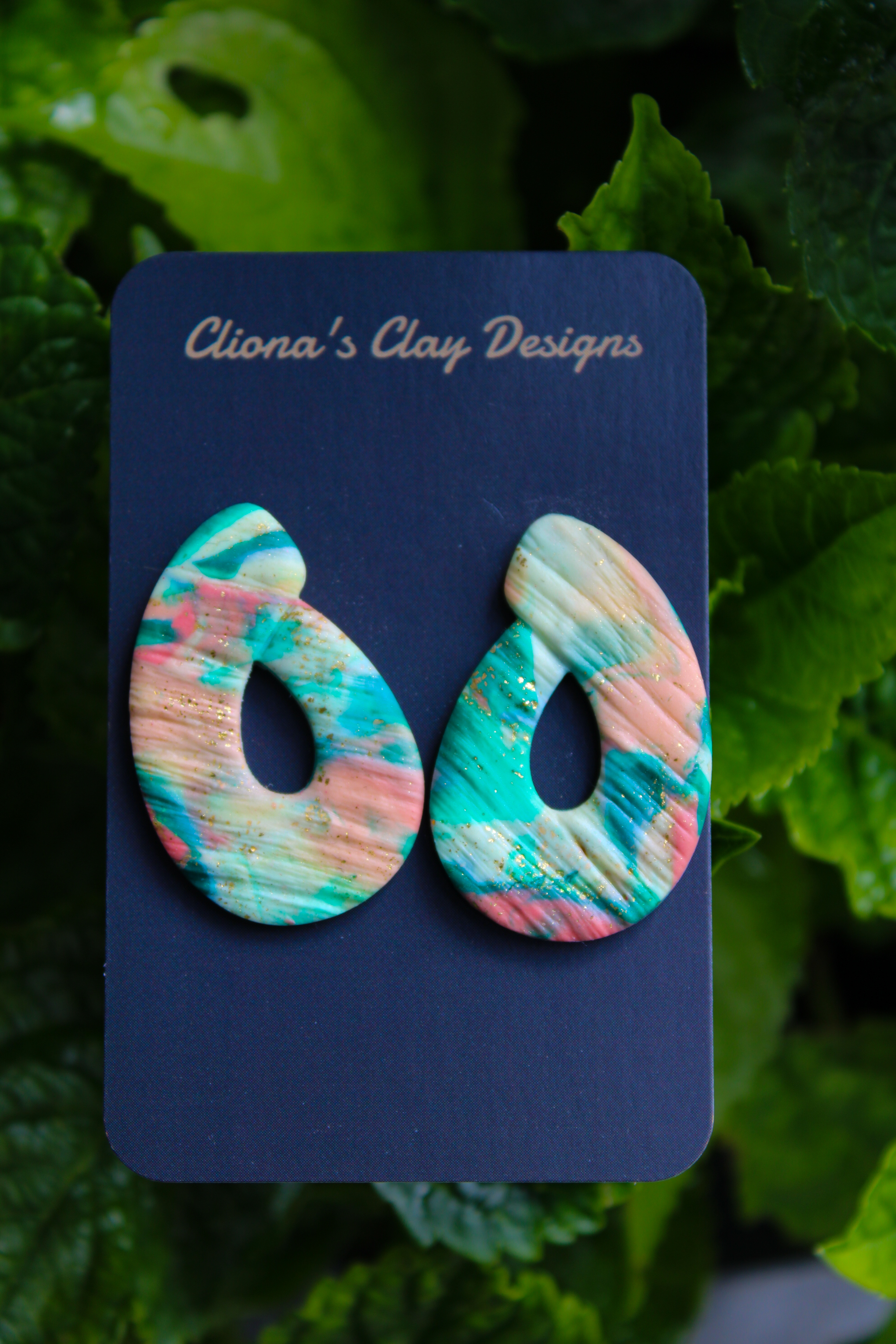 Home / SHOP / Crafts / Cliona Clay Designs / Emerald Peach Mix Comma Style Large StudGorgeous, Unique and made with Love!