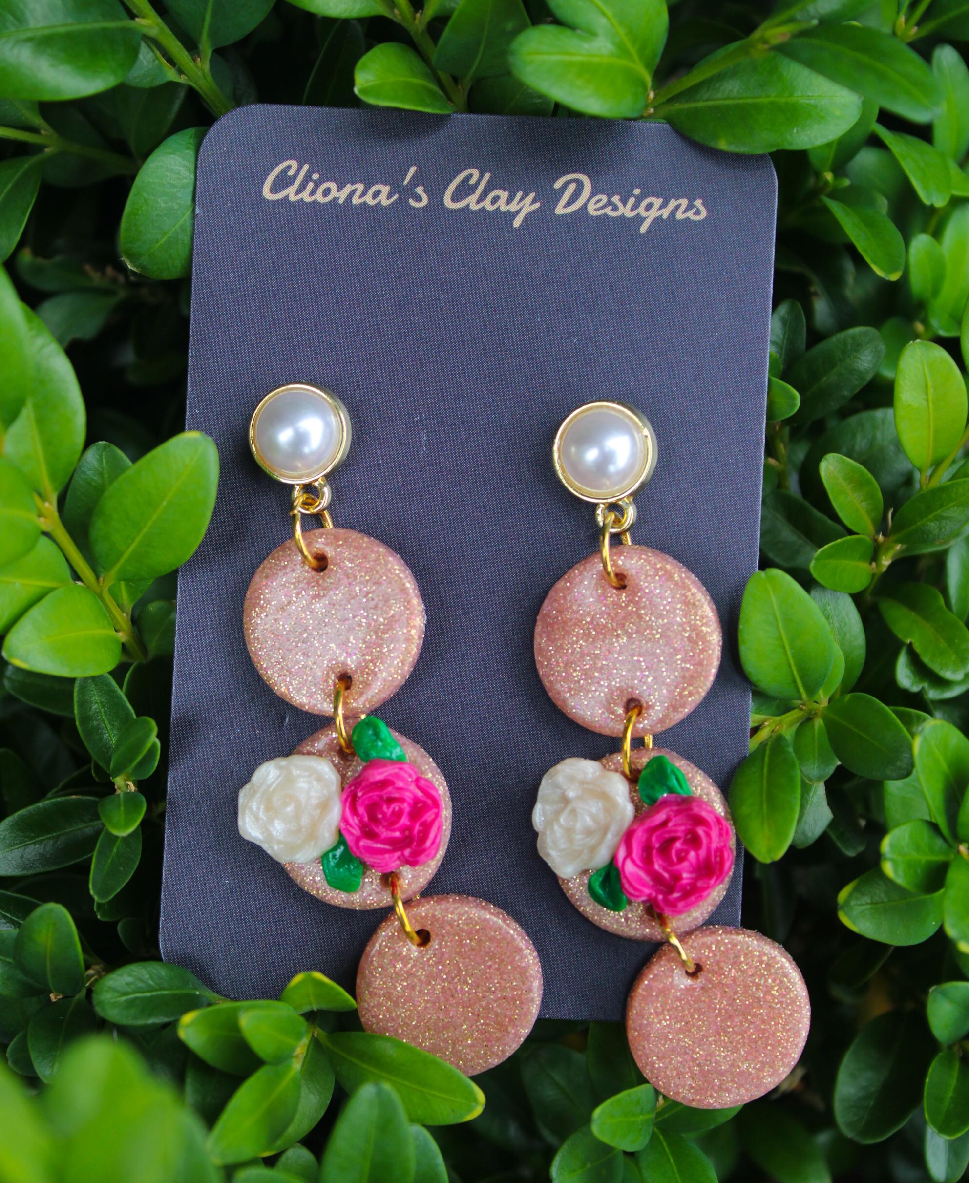Home / SHOP / Crafts / Cliona Clay Designs / Floral 3 Drop Rose Gold on Pearl StudGorgeous, Unique and made with Love!