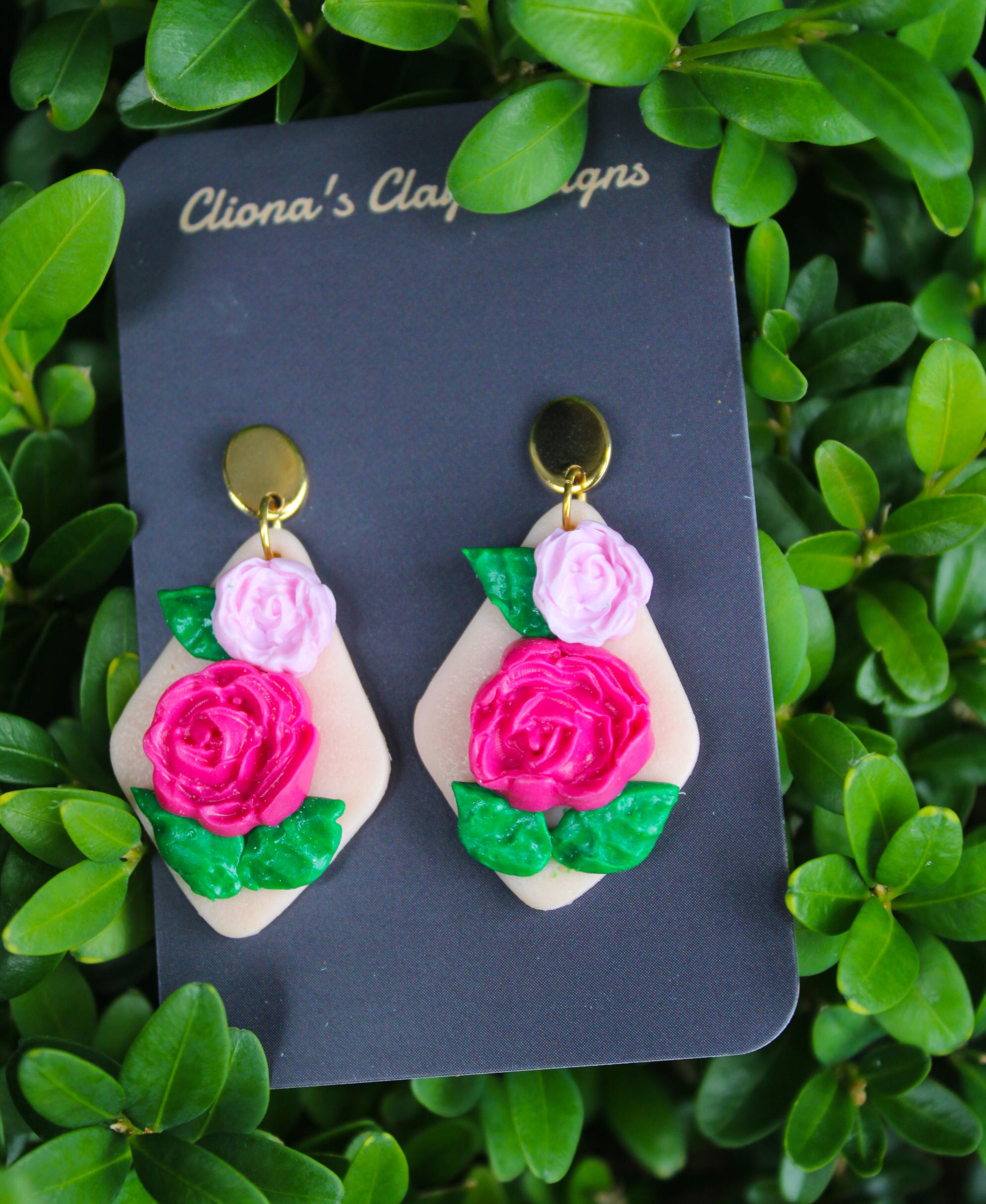 Home / SHOP / Crafts / Cliona Clay Designs / Floral Diamond on Gold Plated StudGorgeous, Unique and made with Love!