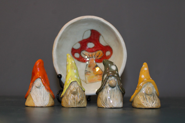Handmade Ceramic gnome from Claytessa's "Mushroom Collection"