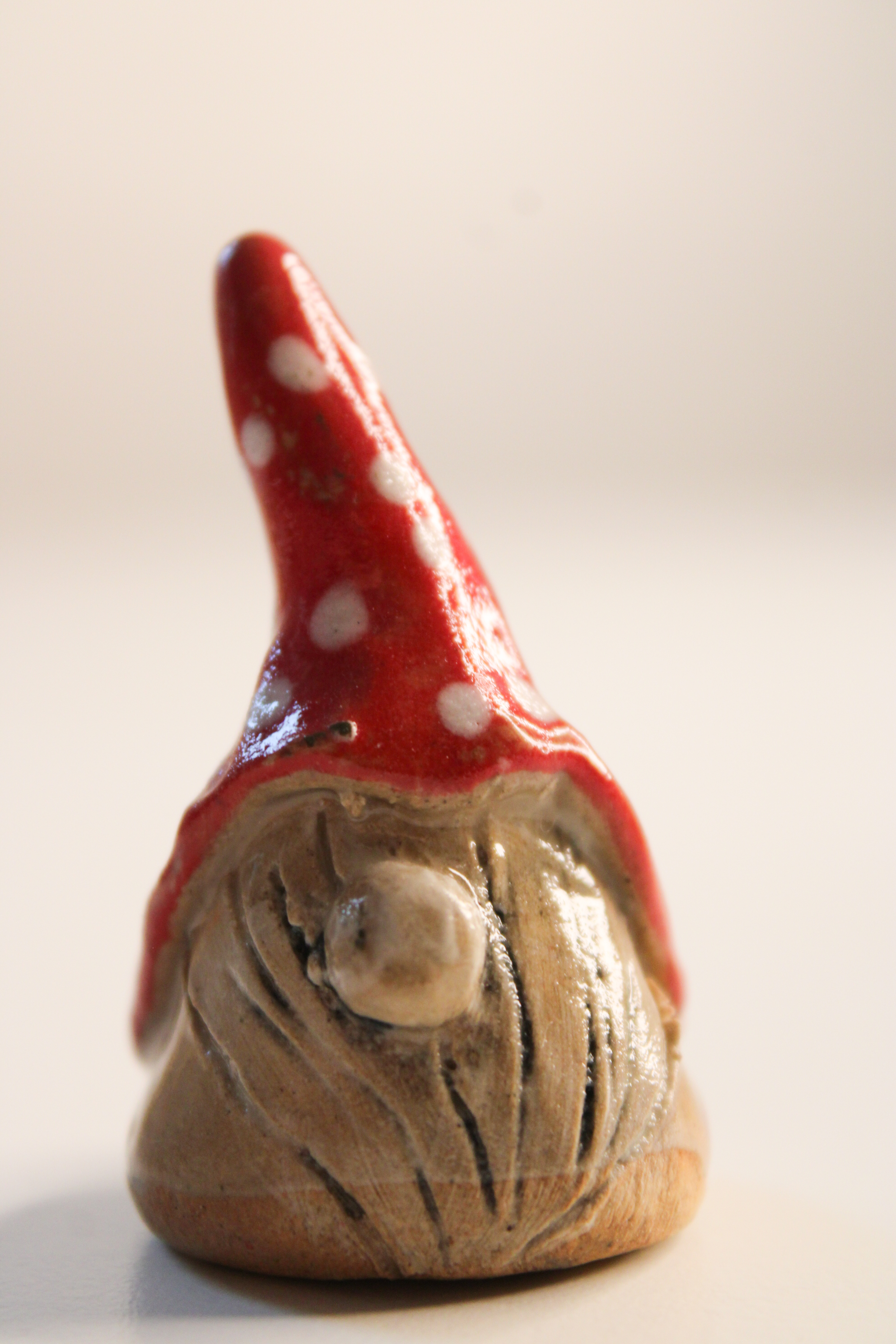 Handmade Ceramic gnome from Claytessa's "Mushroom Collection"