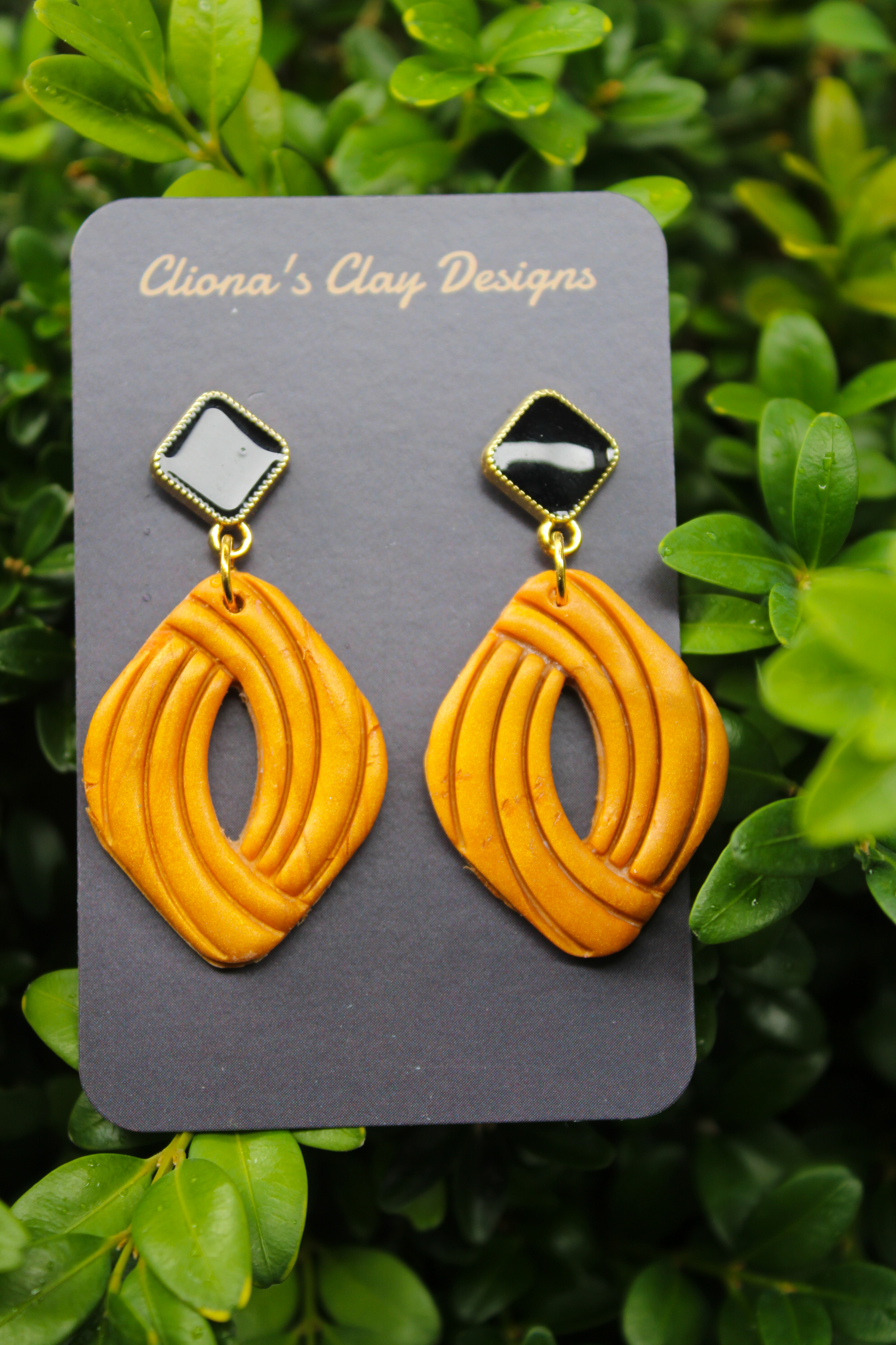 Gold Diamond Hollow on Black Stud
