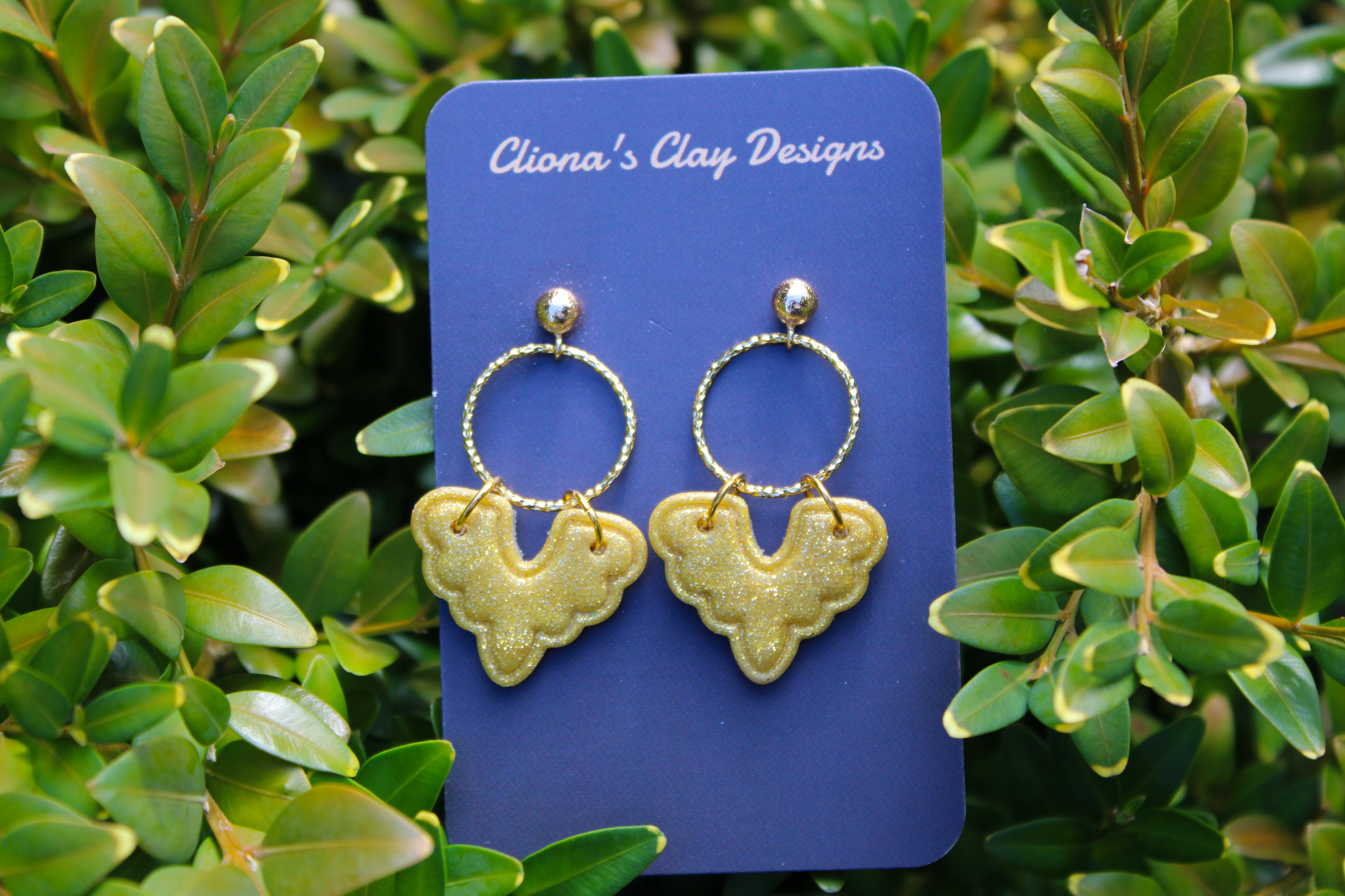 Home / SHOP / Crafts / Cliona Clay Designs / Gold Glitter V on Large Gold Jump Ring on Gold StudGorgeous, Unique and made with Love!