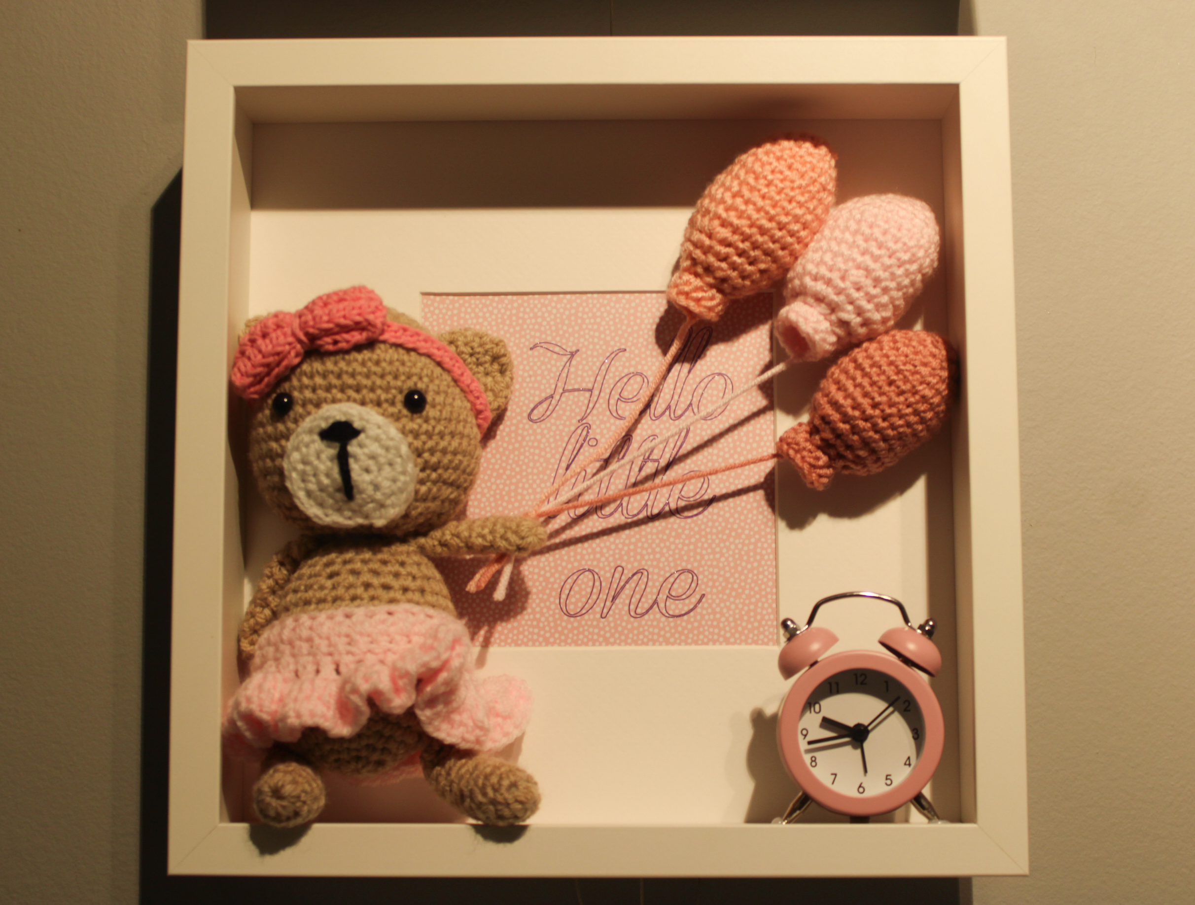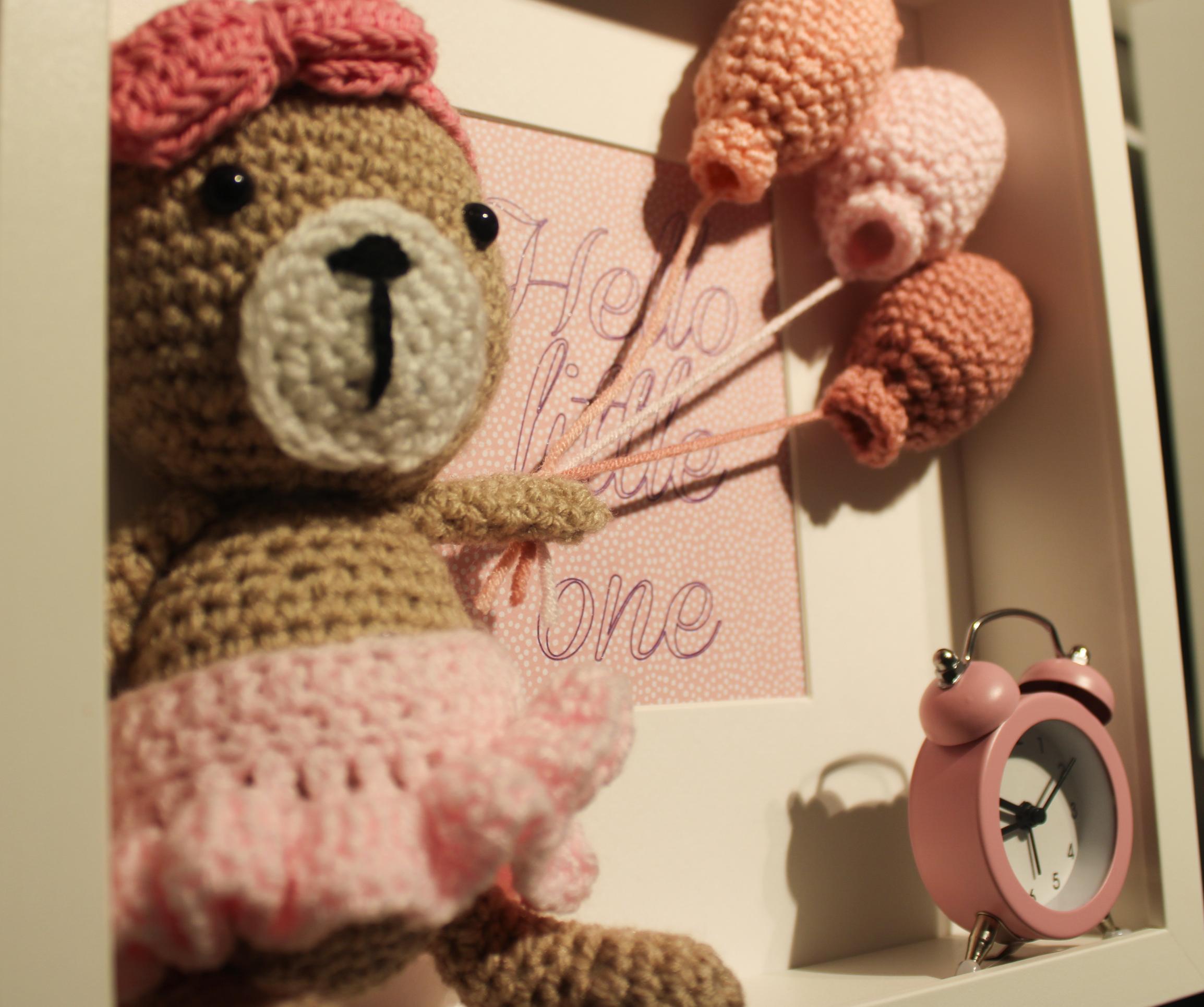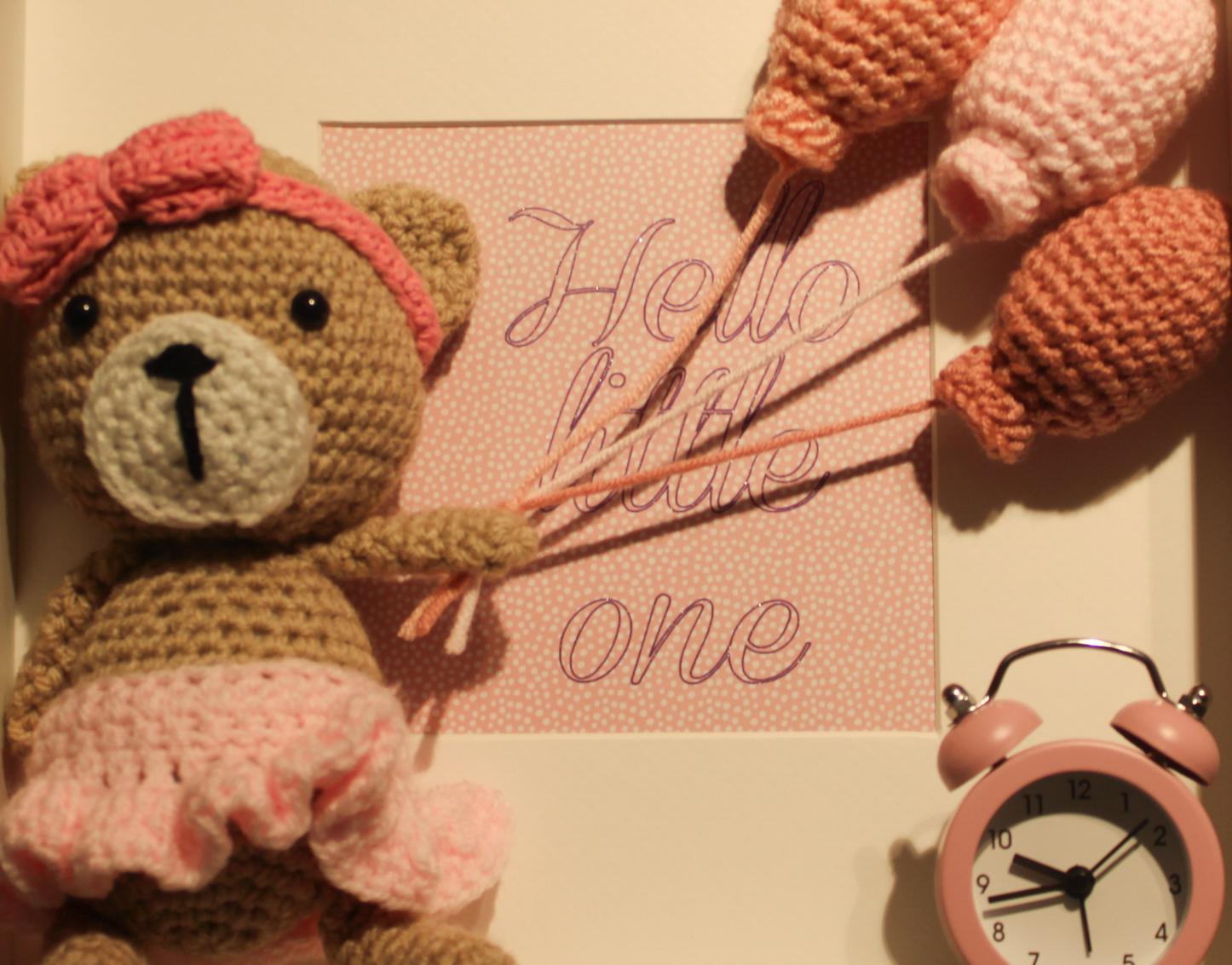 Home / SHOP / Crafts / Nell's Knits / Nell Knit's Artwork / "Hello little One" - Bear in PinkCreating something to be kept, passed on and everlasting
