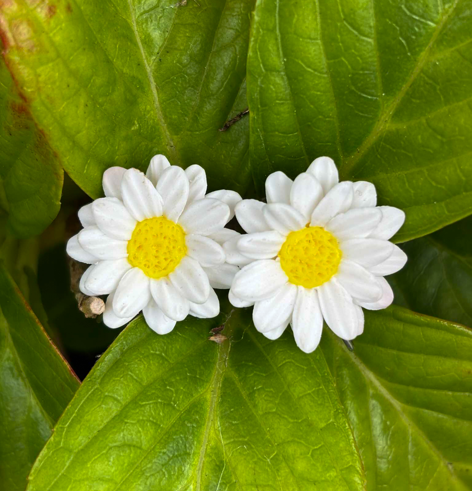 Large White Flower Stud Earrings handcrafted with Polymer Clay