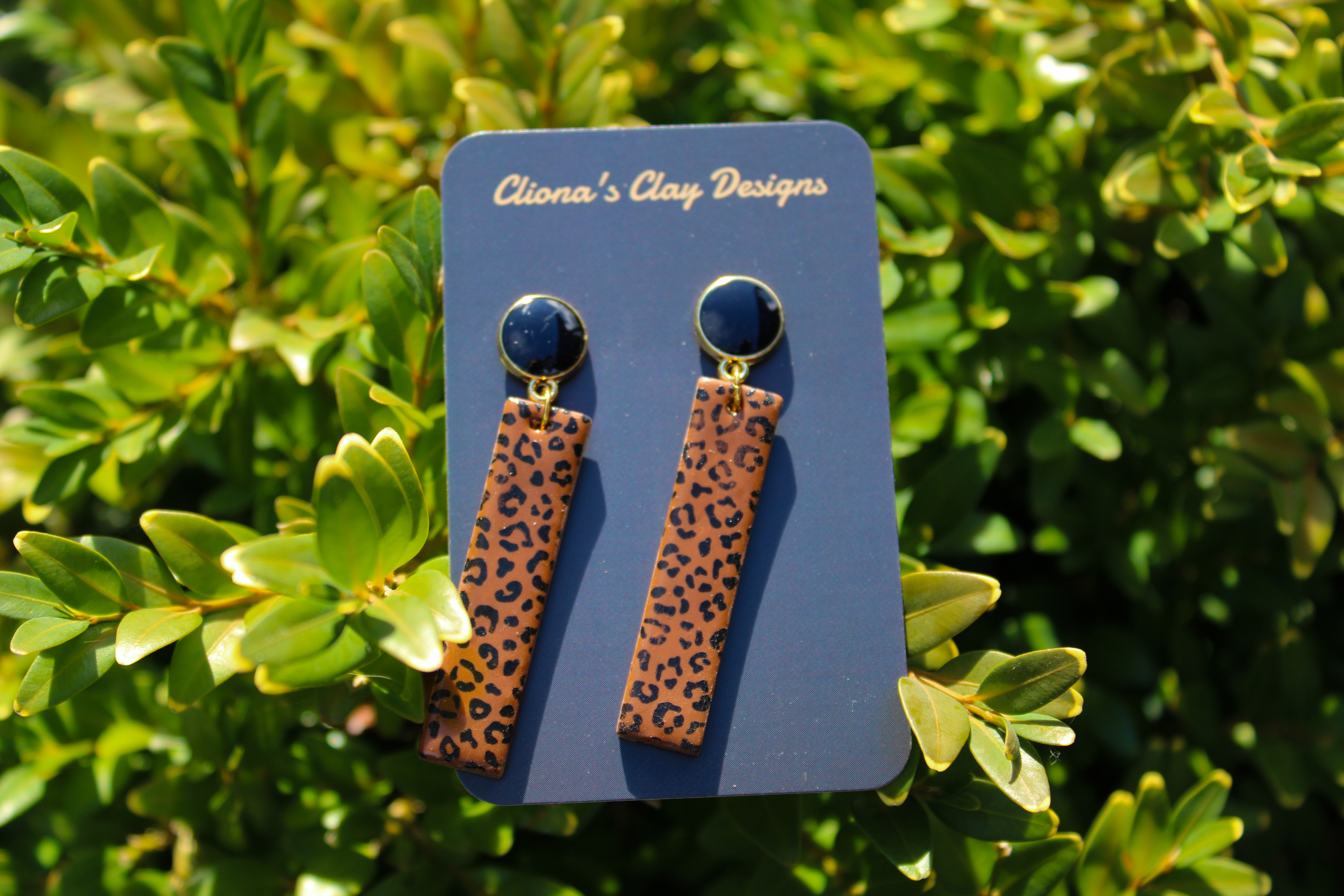 Home / SHOP / Crafts / Cliona Clay Designs / Long Rectangular Leopard Print on Black StudGorgeous, Unique and made with Love!