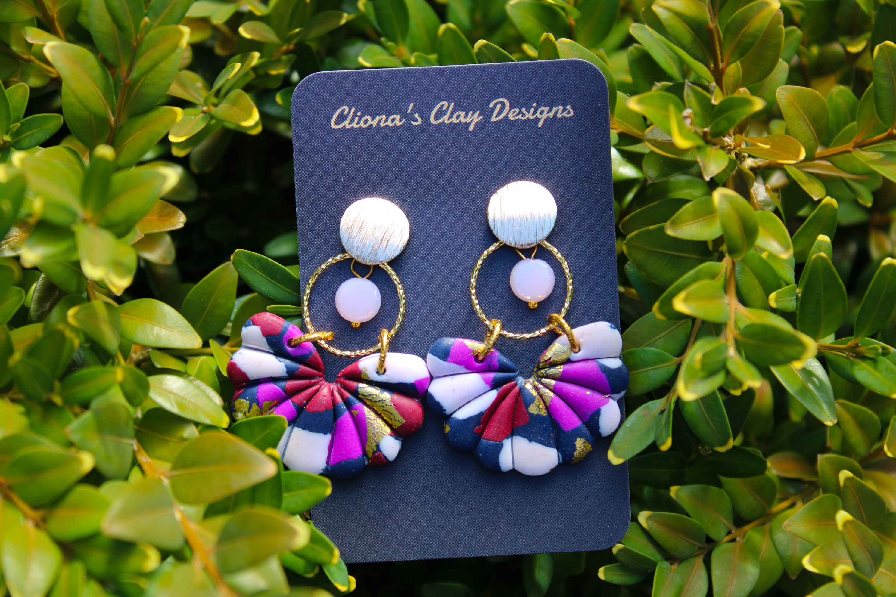 Home / SHOP / Crafts / Cliona Clay Designs / Navy Pink Mix Large Shell Style with Pink Gem DropGorgeous, Unique and made with Love!