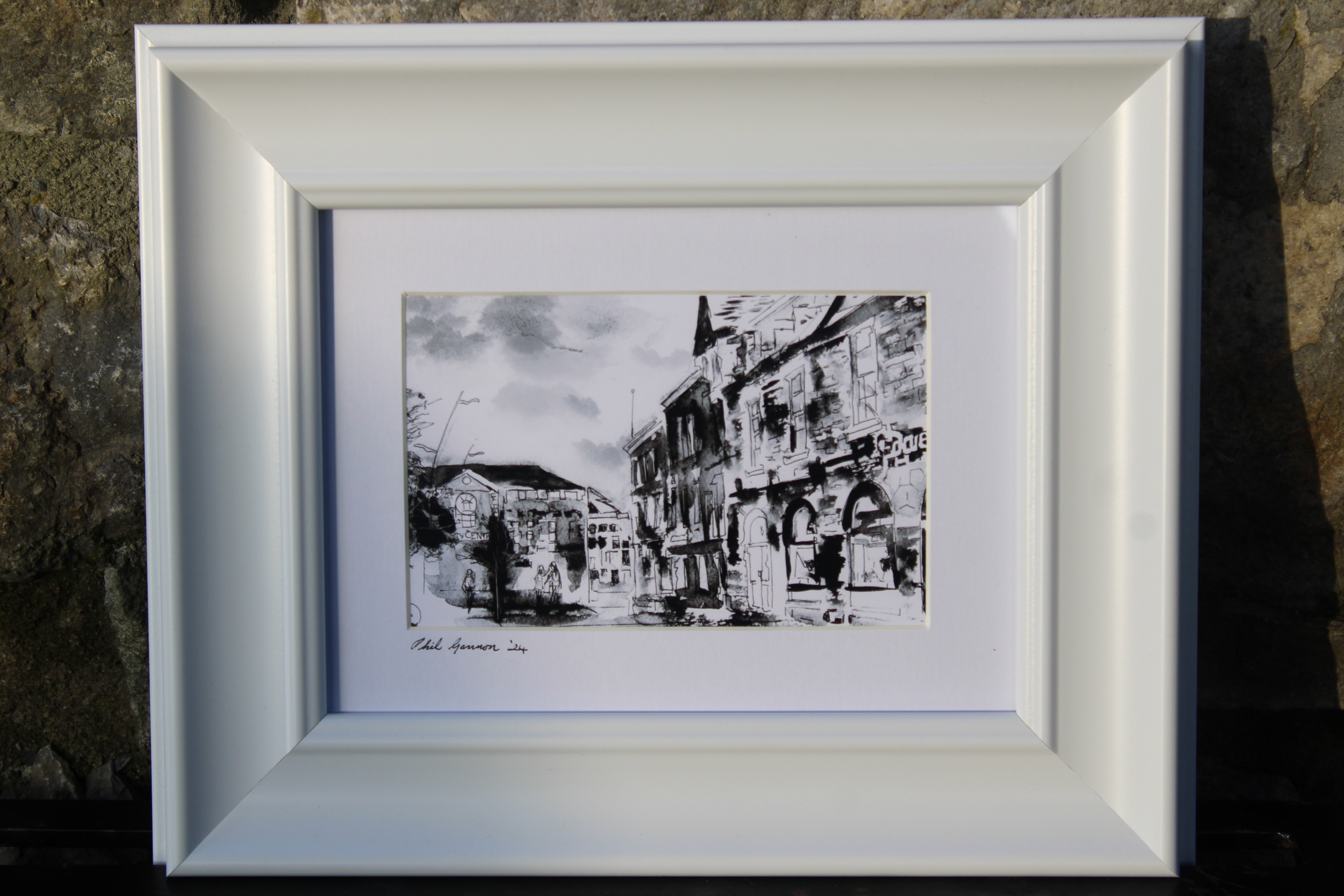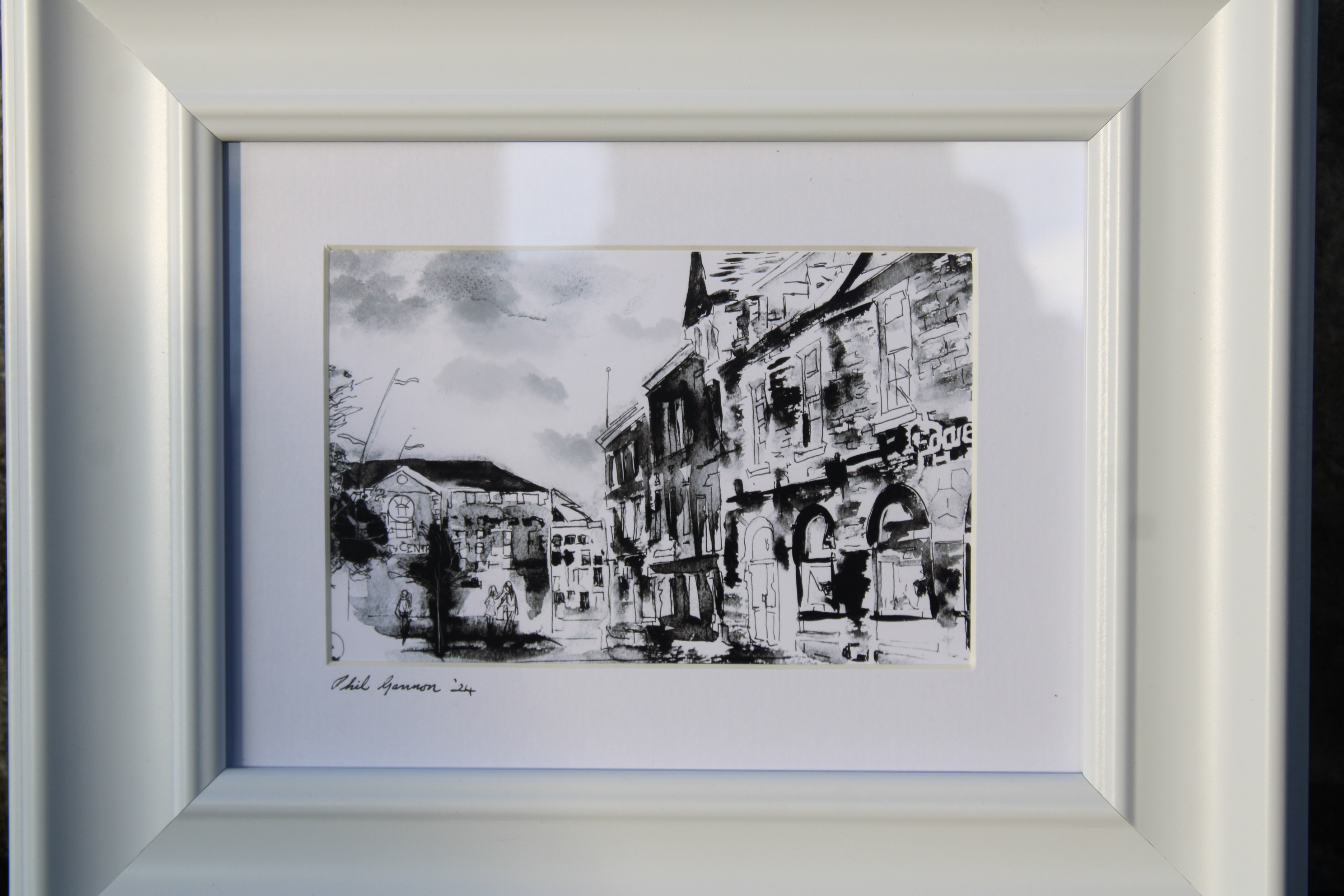 Home / SHOP / Fine Art / Fine art prints / Phil Gannon / O'Connors Sqaure, Tullamore €40Limited Edition Framed Ink Print