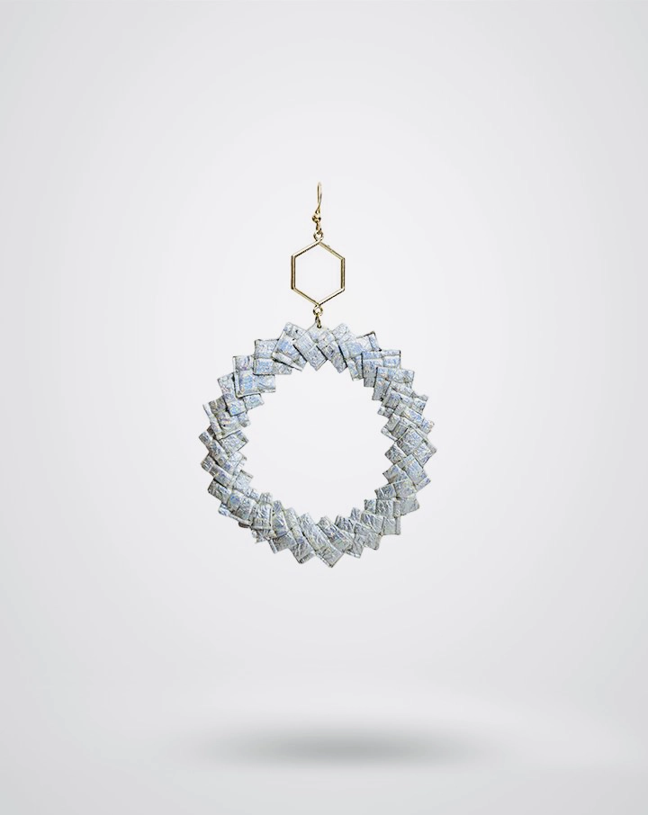 Discover our elegant O'MELO earrings in silver leather with holographic effects.