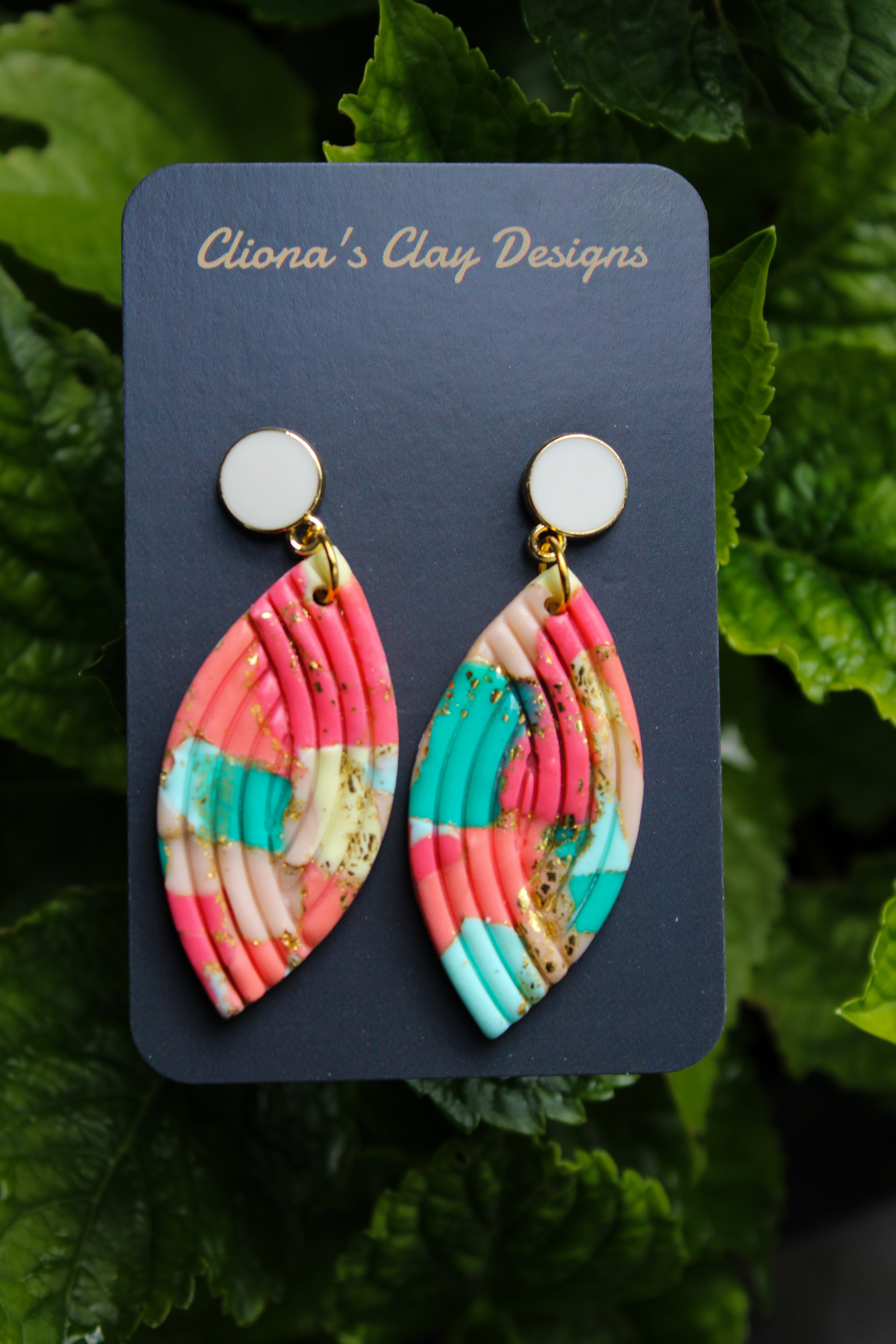 Home / SHOP / Crafts / Cliona Clay Designs / Peach and Turquoise Eye Shape on White StudGorgeous, Unique and made with Love!