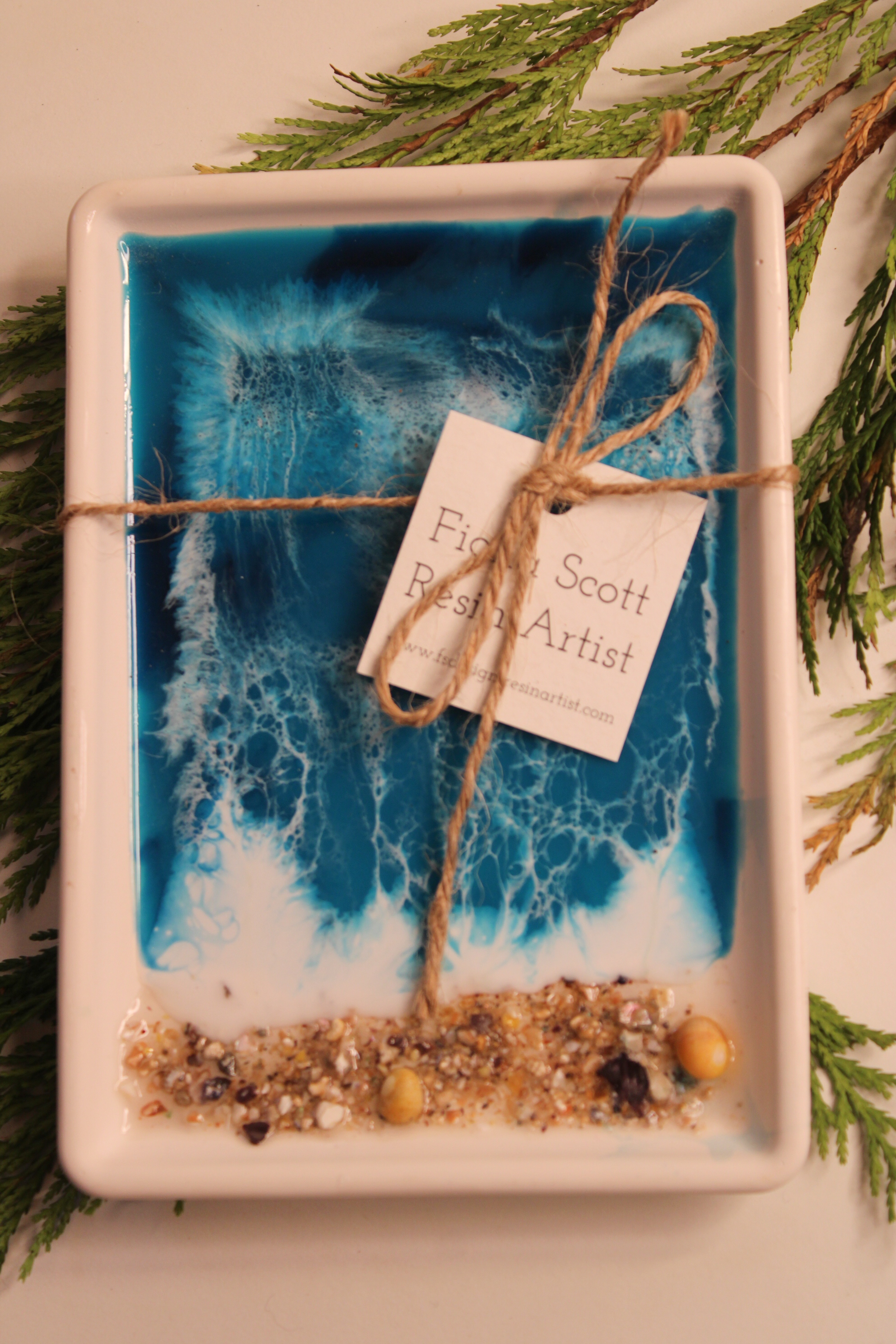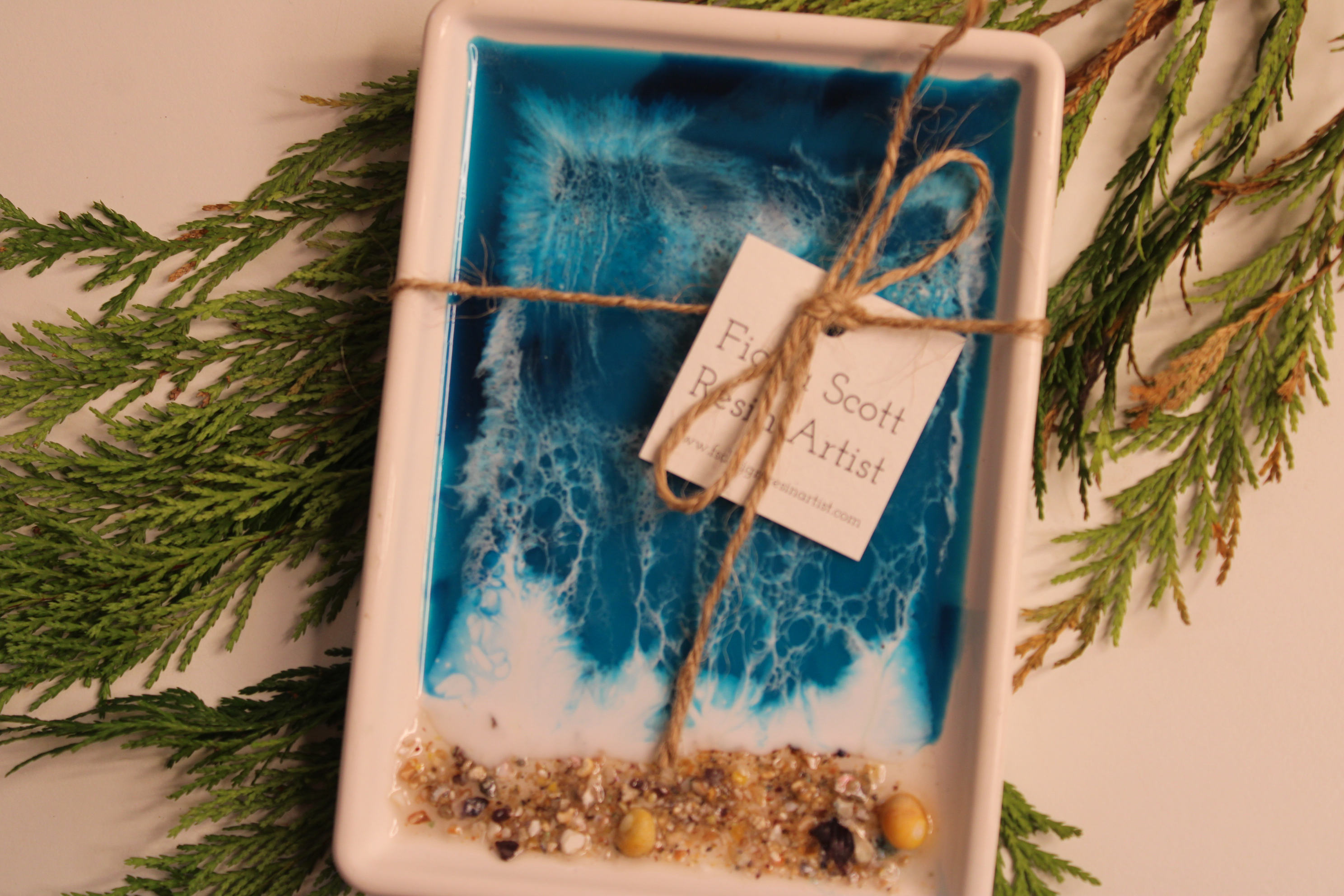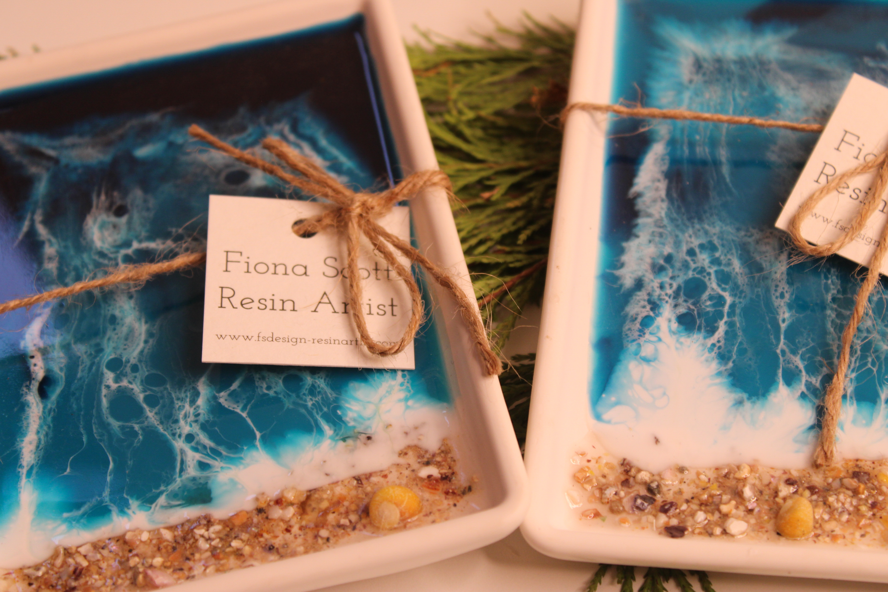 The wood used is sustainably sourced locally from trees that have come to the end of there natural lives, storm damaged or felled for being dangerous. The wood is kiln dried for 6-8 weeks to ensure that they will not warp or twist. Once the boards are cut out they are sanded, sanded and sanded some more. This creates a smooth base for the resin art. As resin art is a flow art it goes on liquid before being left to cure for 48 hours. Then it’s back to sanding the backs to remove resin residue and all the boards are finished with a food safe mineral oil to bring up the beauty of the wood grain.