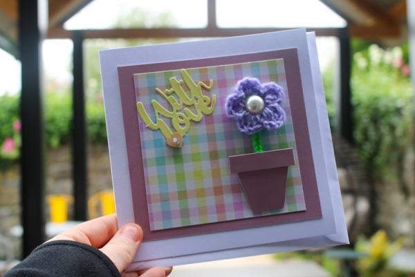 Home / SHOP / Crafts / Nell's Knits / Nell Knit's Cards / With love Potted Plant in PurpleHandcrafted Knitted Greeting Cards