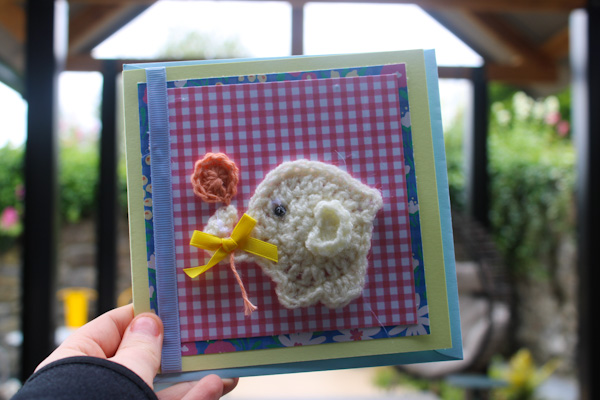 Home / SHOP / Crafts / Nell's Knits / Nell Knit's Cards / Yellow Elephant with Orange BalloonHandcrafted Knitted Greeting Cards
